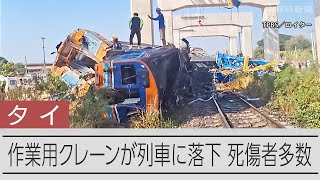 タイで発生した列車事故について。建設クレーンが倒れ、走行中の列車に衝突した痛ましい事故で、多数の死傷者が出ています。インフラ整備や安全管理体制について議論を呼ぶ可能性があります。