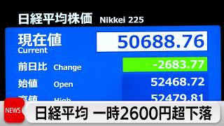 日経平均一時2100円超暴落!5万1000円割れ